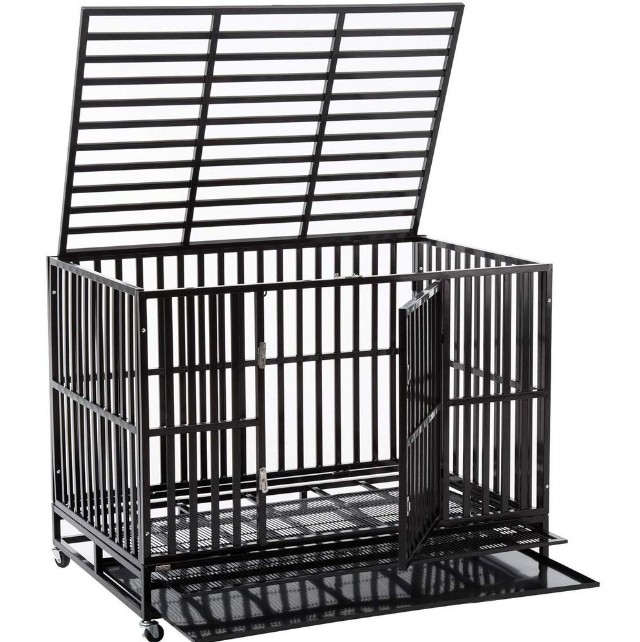1. Čvrsti metalni okvir: The Teška cijev metalna kaveza za pse S otvorenim gornjim dizajnom prihvaća čvrsti metalni okvir izrađen od ojačanih metalnih cijevi s izuzetno visokim kapacitetom i izdržljivošću. Metalne cijevi su precizno obrađene i zavarene kako bi tvorile stabilnu strukturu okvira koja može izdržati težinu PET -a i utjecaj dnevnih aktivnosti, osiguravajući ukupnu stabilnost kaveza i sigurnu aktivnost prostora za PET.