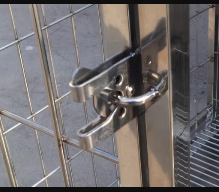 3. Rotirajuća brava sigurnosnih vrata osigurava siguran ulazak i izlaz: Rotirajuća brava sigurnosnih vrata je vitalna komponenta teške cijevi metalnog kaveza za pse s otvorenim gornjim dizajnom, a igra nezamjenjivu ulogu u osiguravanju sigurnosti kućnih ljubimaca. Rotirajuća brava sigurnosnih vrata lako je upravljati, a također može spriječiti da kućne ljubimce sami otvori vrata kaveza kako bi se izbjegao slučajni bijeg. Ovaj dizajn omogućava vlasnicima kućnih ljubimaca da se lako otvaraju i zatvaraju vrata kaveza, a također osigurava da zaključavanje vrata ostane stabilno kad se zatvore.