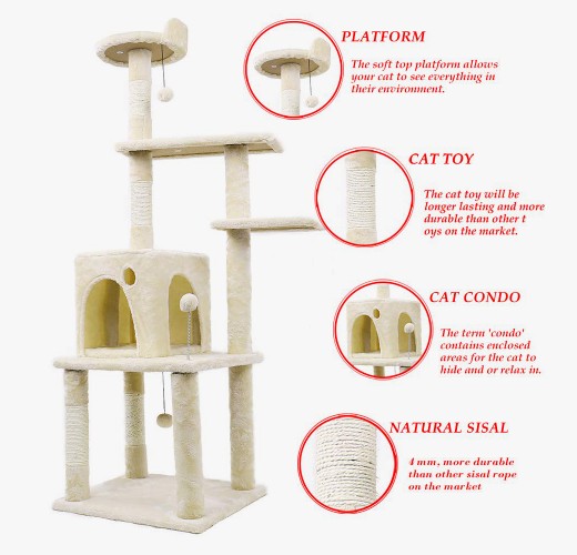Postoje tri penjačke platforme sa strane okvira za penjanje stabala Condo Condo Condo, od kojih je svaka dovoljno prostrana da mačke slobodno skaču i istražuju. Ove platforme povećavaju prostor da se mačke kreću, a također im omogućuju da vježbaju i ostanu aktivni tijekom procesa penjanja. Na dnu se nalazi mačji krevet s mekim jastucima, pružajući topao i udoban prostor za spavanje mačkama.