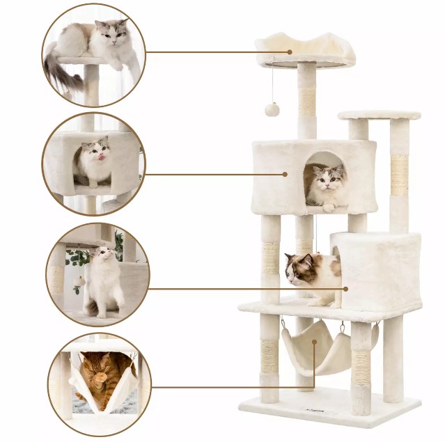 2. Omogućite skriveni i sigurni prostor za odmaranje: stabla mačaka dizajnirana su s više platformi i gnijezda, pružajući mačkama mirno i ugodno okruženje za odmaranje. Mačke mogu odabrati različita mjesta kako bi se odmorile prema svojim sklonostima. Ove platforme i gnijezda čine da se mačke osjećaju sigurno i opušteno, a također doprinose svom fizičkom i mentalnom zdravlju.