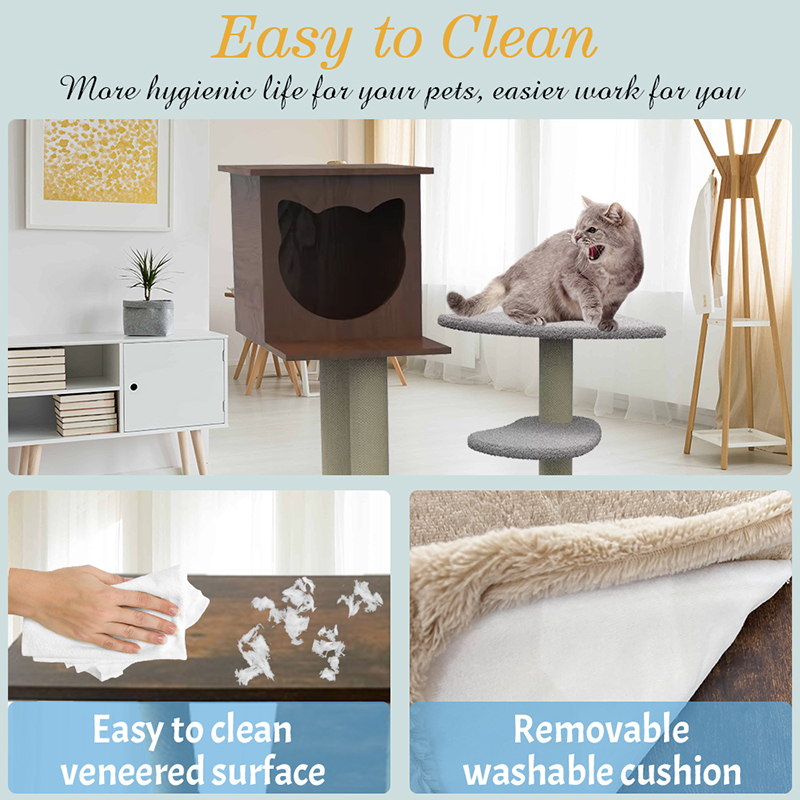 3.Omni-usmjerena zaštita: Zadebljani stupovi i prirodni sisalni konop su čvrsto ranjeni, s jakim opterećenim kapacitetom i znanstvenim dizajnom visine kako biste osigurali da je vaša mačka stabilna kao i planina svaki put kad skače. s