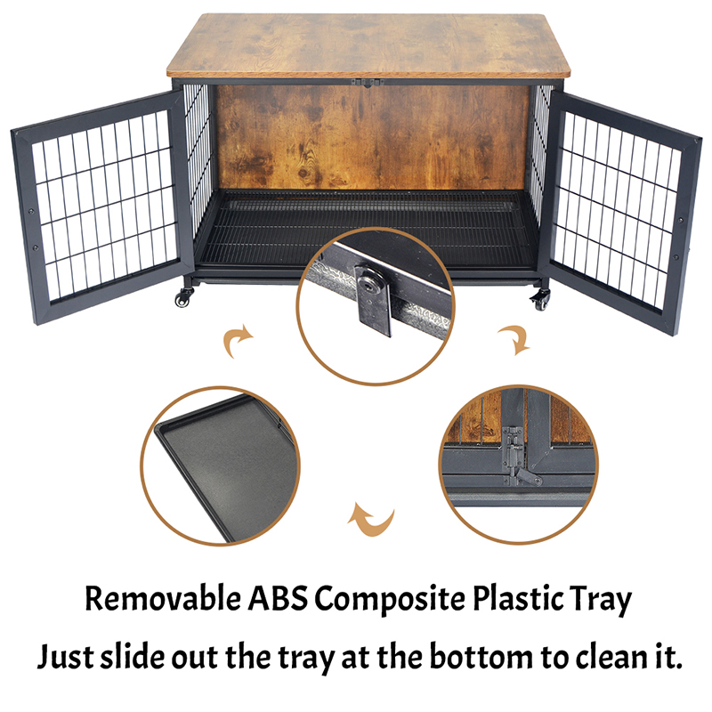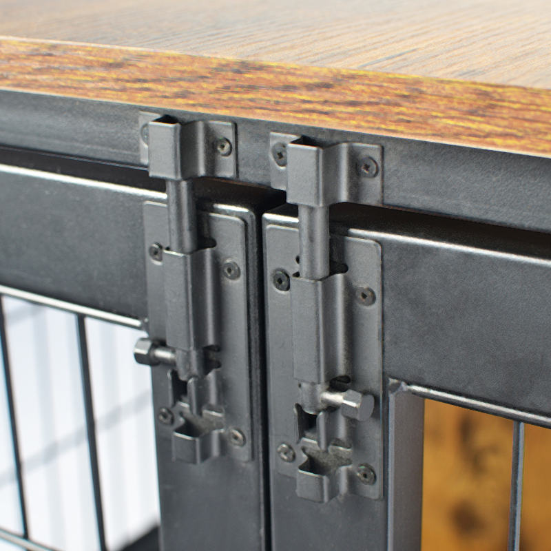 1. Siguran i bezbrižan dizajn: Metalna žica i kombinacija okvira od čvrstog drveta, kavez za pse u stilu namještaja opremljen humaniziranom ručicom vrata i zaključavanjem vrata za zasun, kako bi se osigurala sigurnost kućnih ljubimaca i prikladna za vlasnike za upotrebu