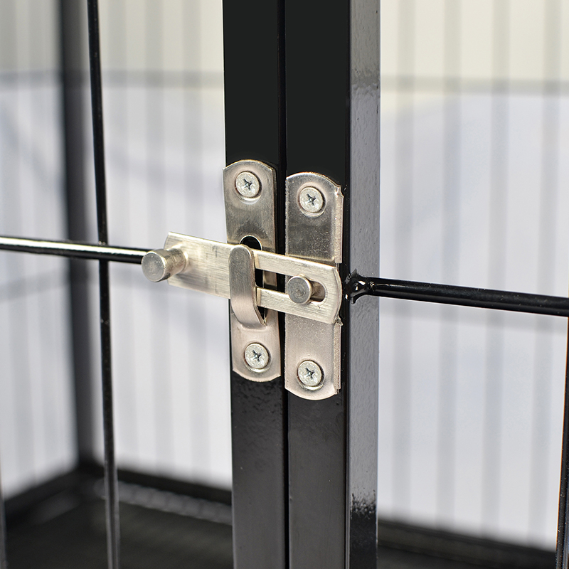 1. Dvostruka zaštita sigurnosti: S dvostrukim dizajnom vrata (gornja vrata ulaznih vrata), metalni kavez za pse otvara se i glatko se zatvara i sigurno zaključava, što olakšava obuku vašeg ljubimca unutra i van, a također osigurava sigurnost vašeg psa.